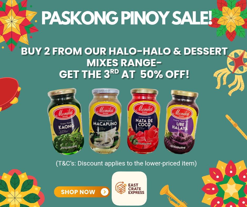Buy any 2 dessert/halo-halo mixes and get the 3rd one at 50% off! (Discount applies to the lower-priced item.)