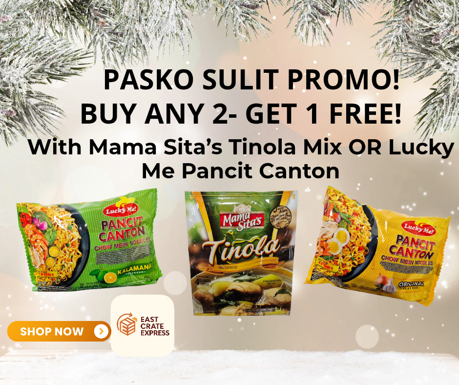 Buy any 2 of Mama Sita's Tinola Mix or Lucky Pancit Canton (Kalamansi or Original) and get the 3rd one for FREE!